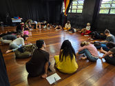 Uma roda de cantoria com os participantes da imersão. . Valéria Braga é professora de Canto Popular e Educação Musical do Departamento de Música da UFSJ.
